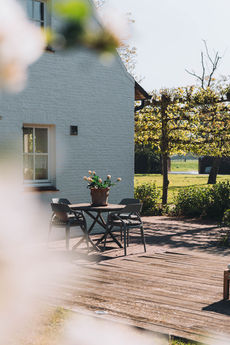 De weelderige tuin omringt het geheel als een groene stilte — een persoonlijk paradijs waar de seizoenen het ritme bepalen. Hier vervaagt de grens tussen binnen en buiten, en wordt elke dag een reden om buiten te zijn.